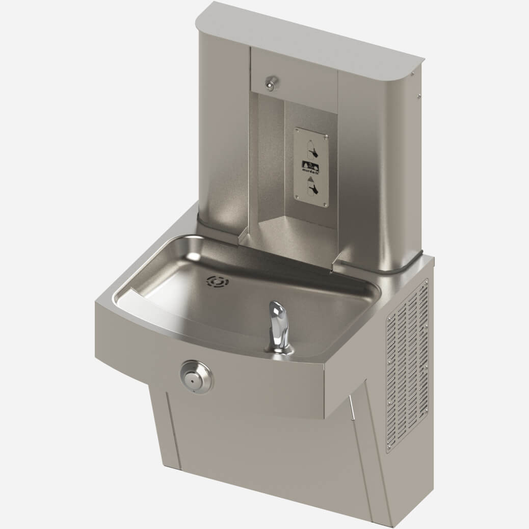 Barrier-Free 14-Gauge Stainless Steel Wall-Mounted Water Cooler and Heavy-Duty Bottle FillerA171408S-FG-VR-BF1Swith Pushbutton Heavy-Duty Bottle Filler