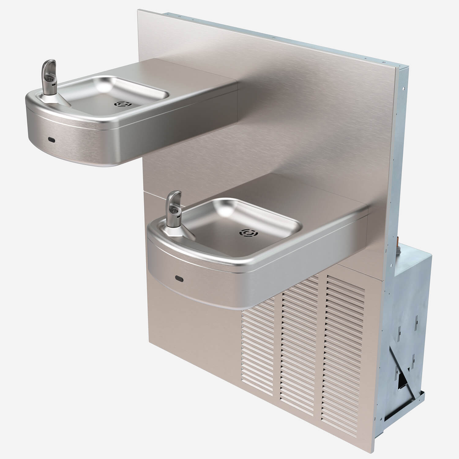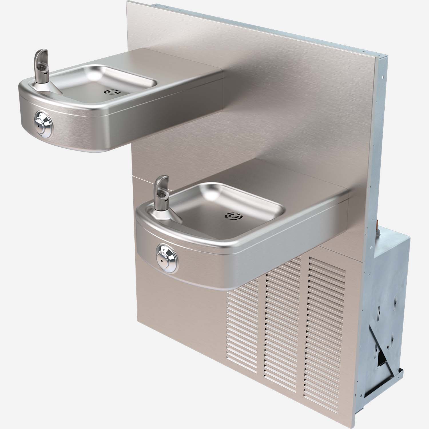 Vandal-Resistant, Wall-Mounted, Bi-Level, Square Drinking Fountain - In-Wall Refrigeration (8GPH), ADA, Stainless Steel