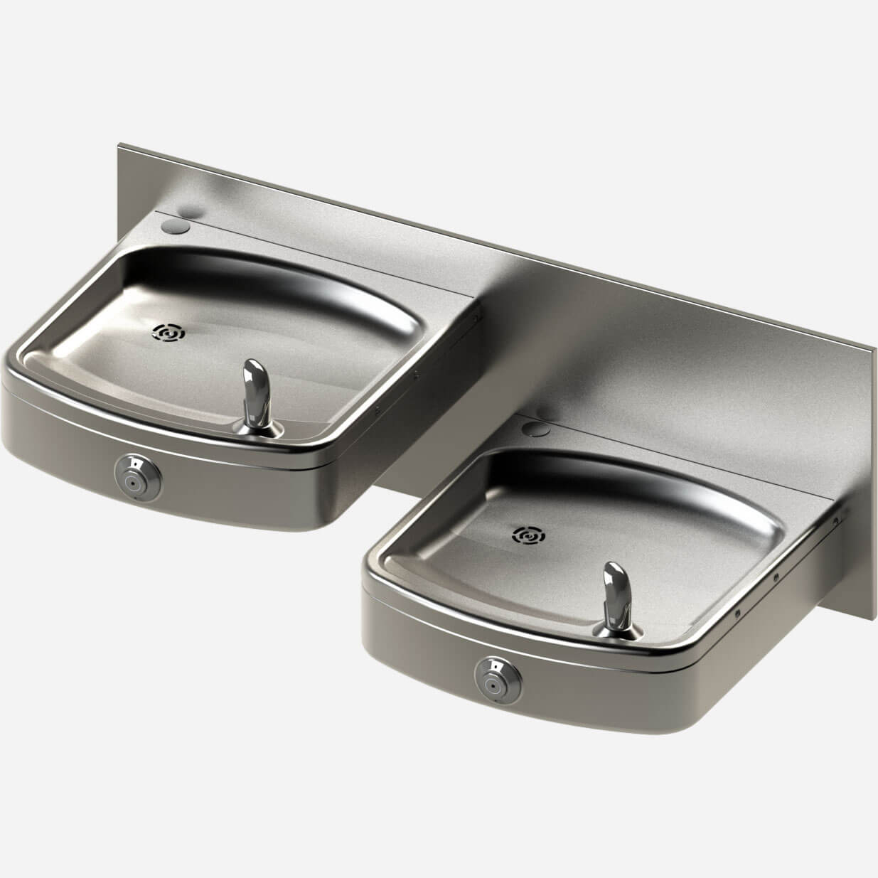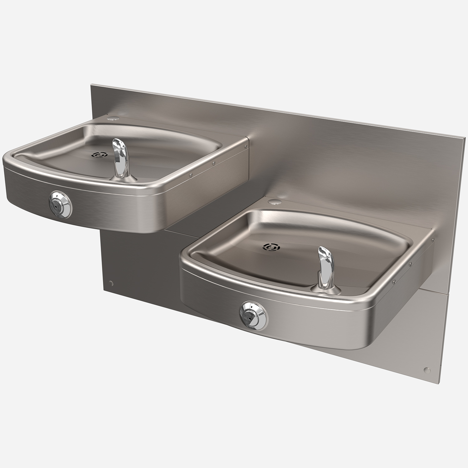 Wall-Mounted, Square, Bi-Level, Push Button Drinking Fountain with Wide Basins - Non-Refrigerated, ADA, Stainless Steel