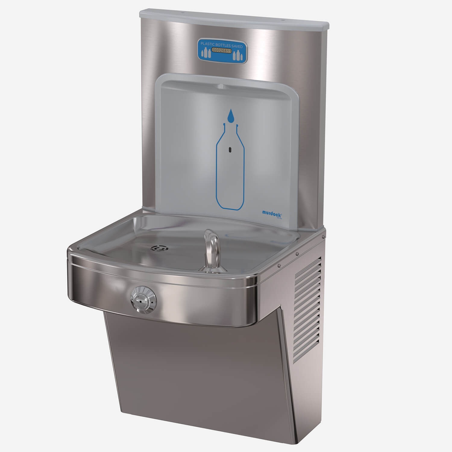 Murdock's ADA Wall Mounted Drinking Fountain with a front Vandal Resistant Button has been redesigned exclusively to work both in form and function with H 2 O to go! ® Deck Mount Sensor Activated Bottle Filler. This is NOT a refrigerated unit.