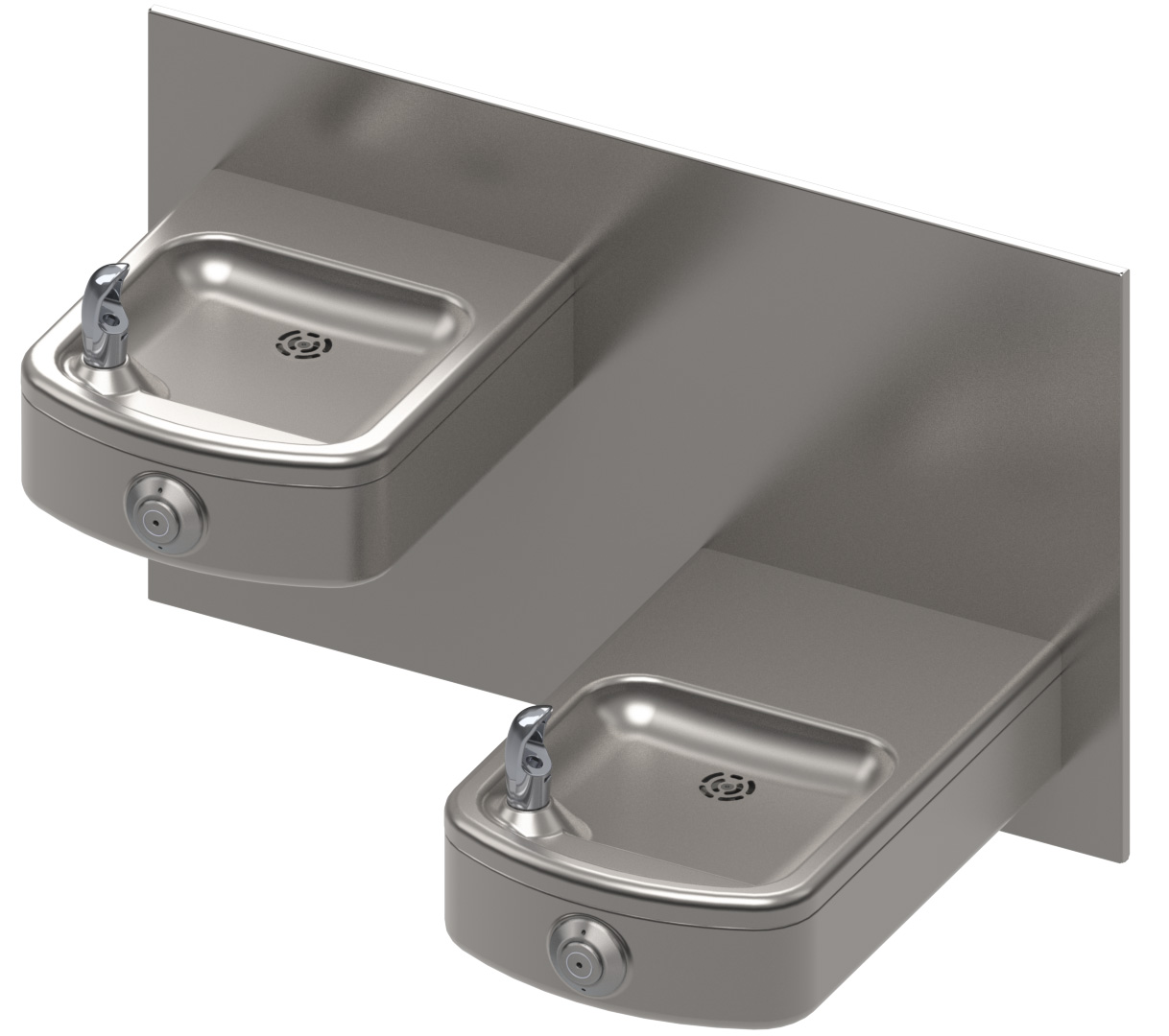 Vandal-Resistant, Wall-Mounted, Bi-Level, Square Drinking Fountain - Non-Refrigerated, ADA, Stainless Steel