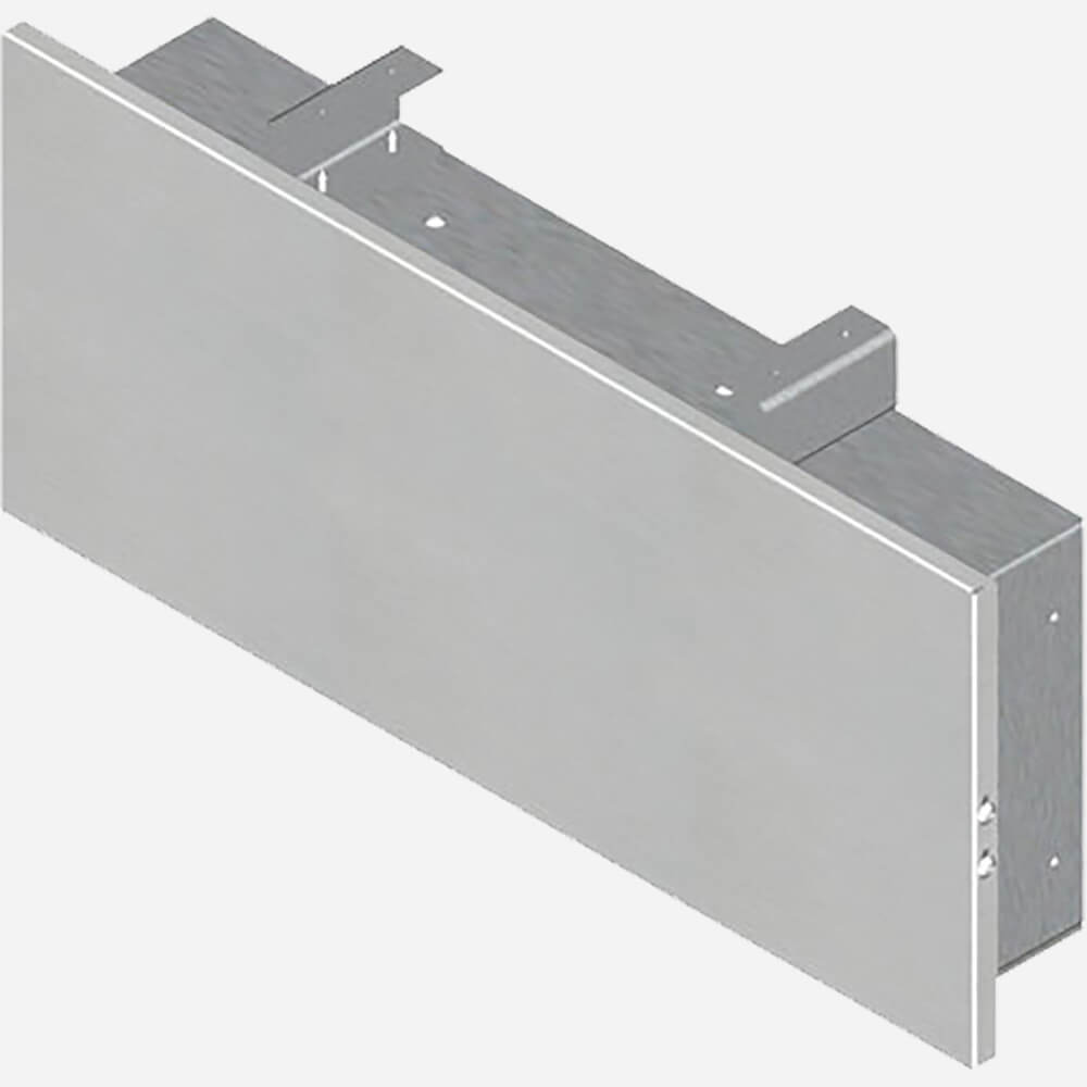 Model A0004000-AP1 is a 21" (533 mm) x 9" (229 mm) vandal-resistant and wall-mounted access panel made from 20 gauge, 304 stainless steel with a brushed finish. The unit includes a mounting frame and panel screws. It is used with single, wall-mounted drinking fountains with a back panel to provide accessibility to the plumbing behind the wall. It is typically available with matching the finish of the Murdock's A13 and A15 Series Drinking Fountains.NOTE: A0000000-MF1 mounting frame is required when specifying this accessory
