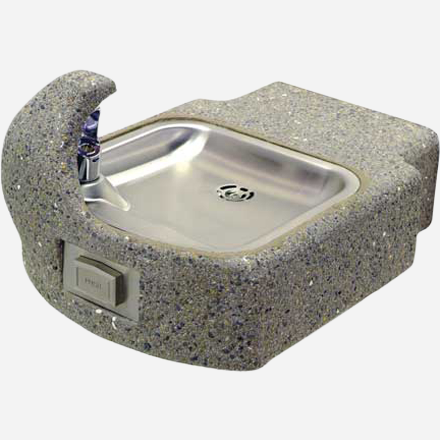 This barrier free, wall mounted, concrete drinking fountain is resistant to sunlight, heat, moisture and wear. It features a front mounted, self-closing activation button. The base unit is constructed of concrete aggregate and has a stainless steel bowl and bubbler. This unit is available in tan or brown aggregate. This unit is both Child and Adult ADA compliant when properly installed.
