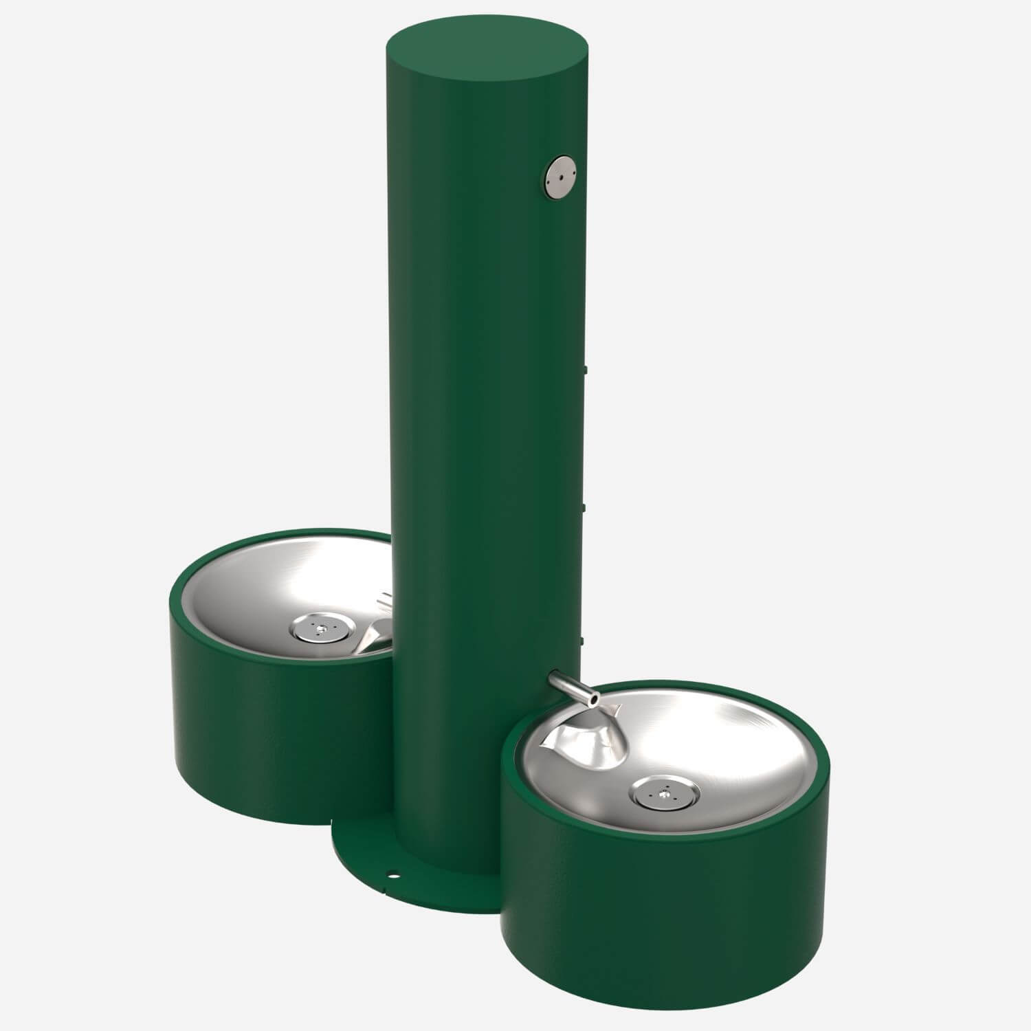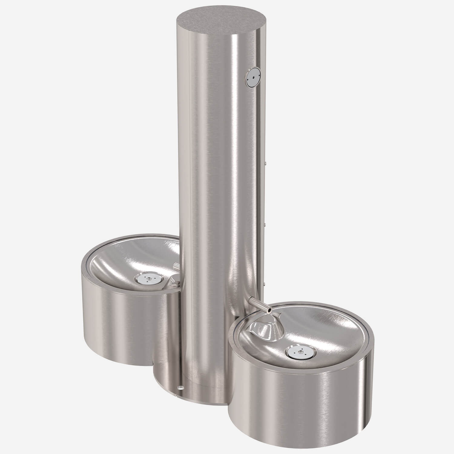 Unit shall be constructed of 14 gauge type 304 stainless steel polished to a satin finish with 18 gauge pet fountain bowls. Bottom plate shall be 3/16” thick and include two mounting holes with four additional mounting holes for pet fountains. 1/2” expansion anchor bolts are furnished. All other exposed fasteners shall be vandal resistant stainless steel screws.