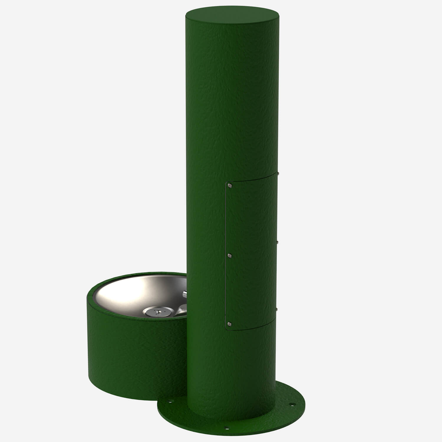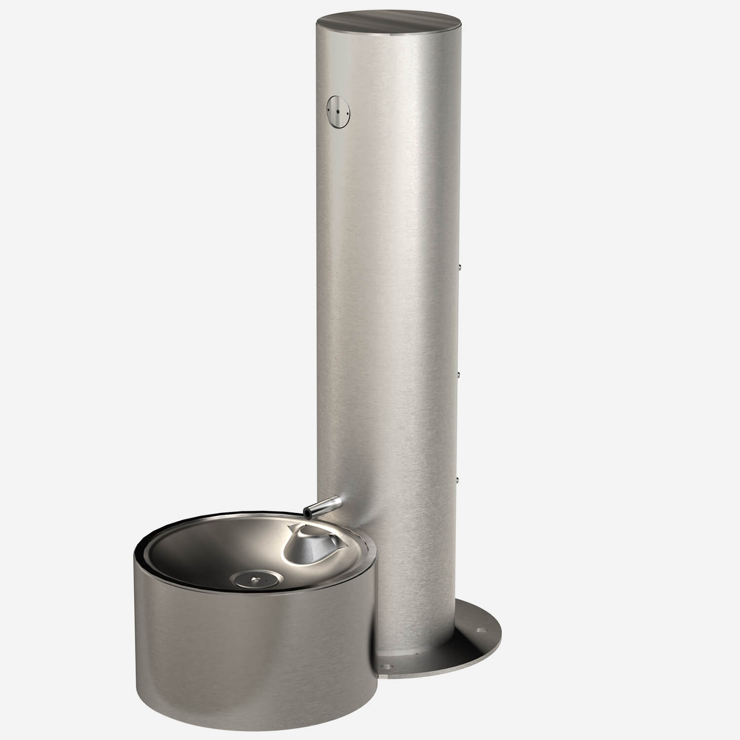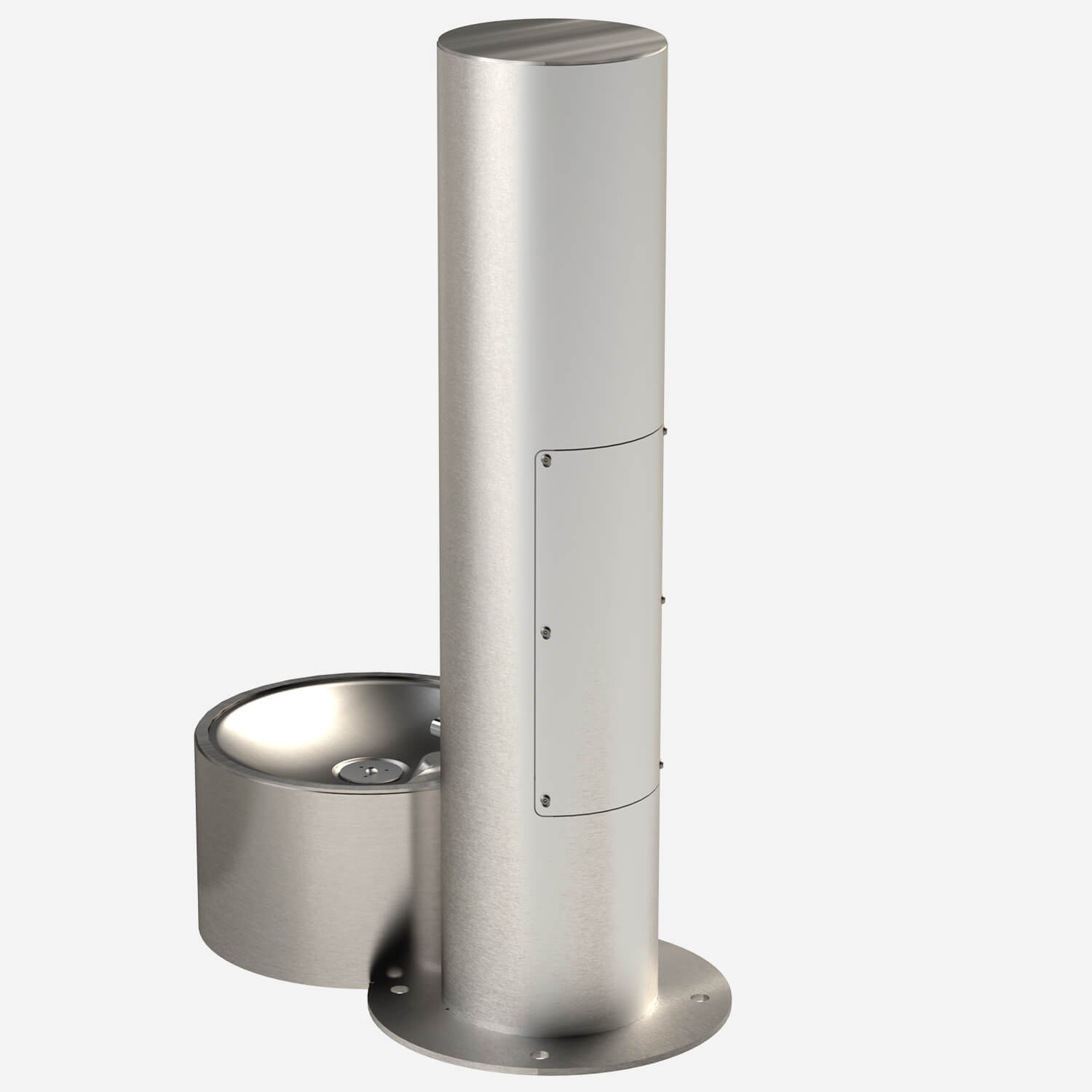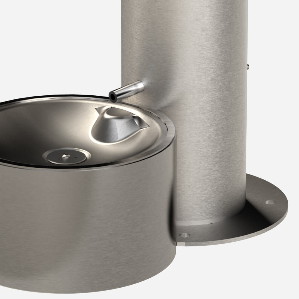 Unit shall be constructed of 14 gauge type 304 stainless steel polished to a satin finish with 18 gauge pet fountain bowl. The bottom plate shall be 3/16" thick and include three mounting holes with two additional mounting holes for the pet fountain. 1/2" expansion anchor bolts shall be furnished. All other exposed fasteners shall be vandal-resistant stainless steel screws.