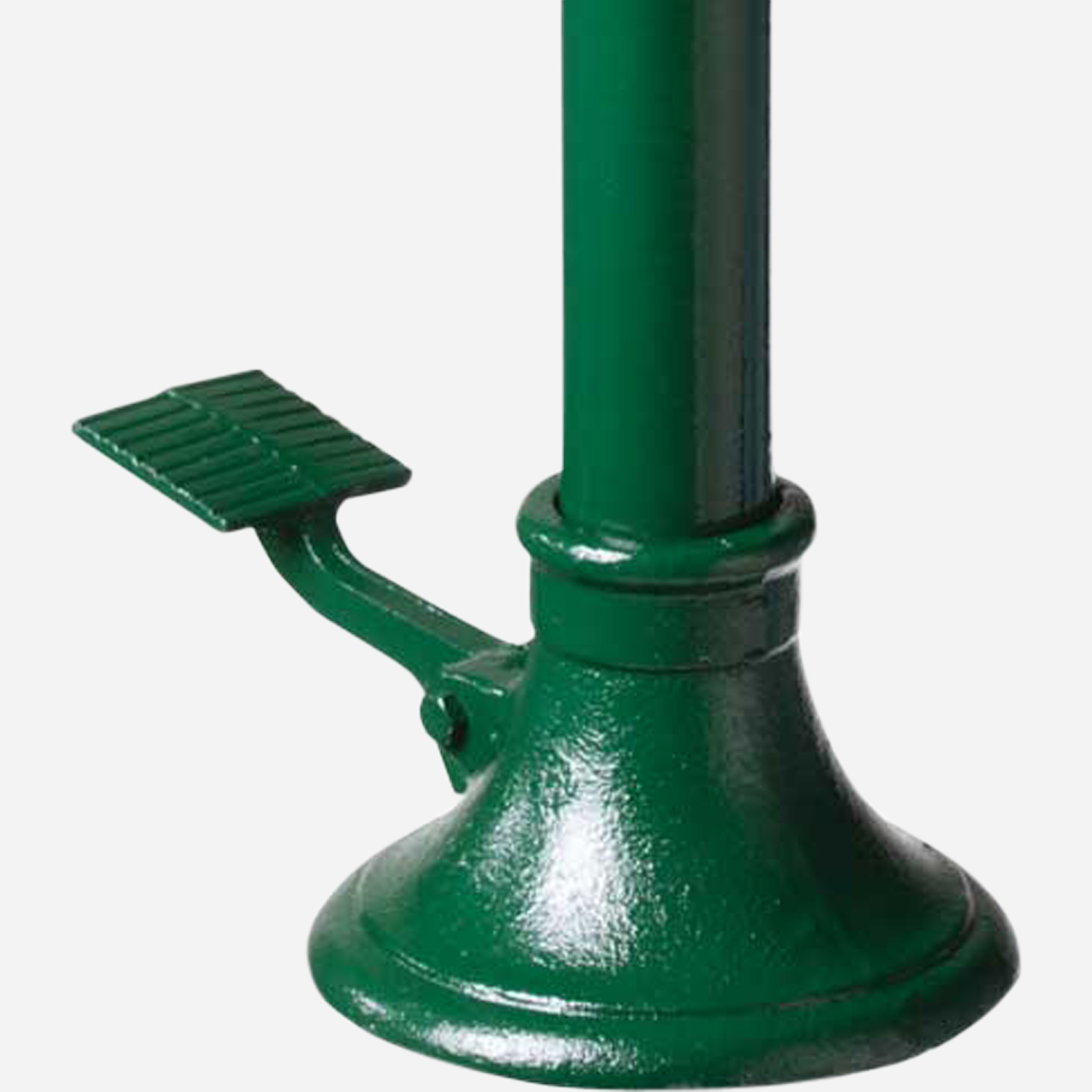 This pedal operated hydrant delivers year-round service outside or in unheated buildings. To provide freeze resistant functionality, the control valve is located below the frost line. Stepping on the pedal raises the internal supplyline assembly to open, and the self-closing spring lowering the internal supply-line assembly to close. Constructed of heavy lead-free brass, premium-quality gray iron and steel. It is ideal for parks, picnic areas and farms. It is designed for trouble free reliability and easy maintenance.